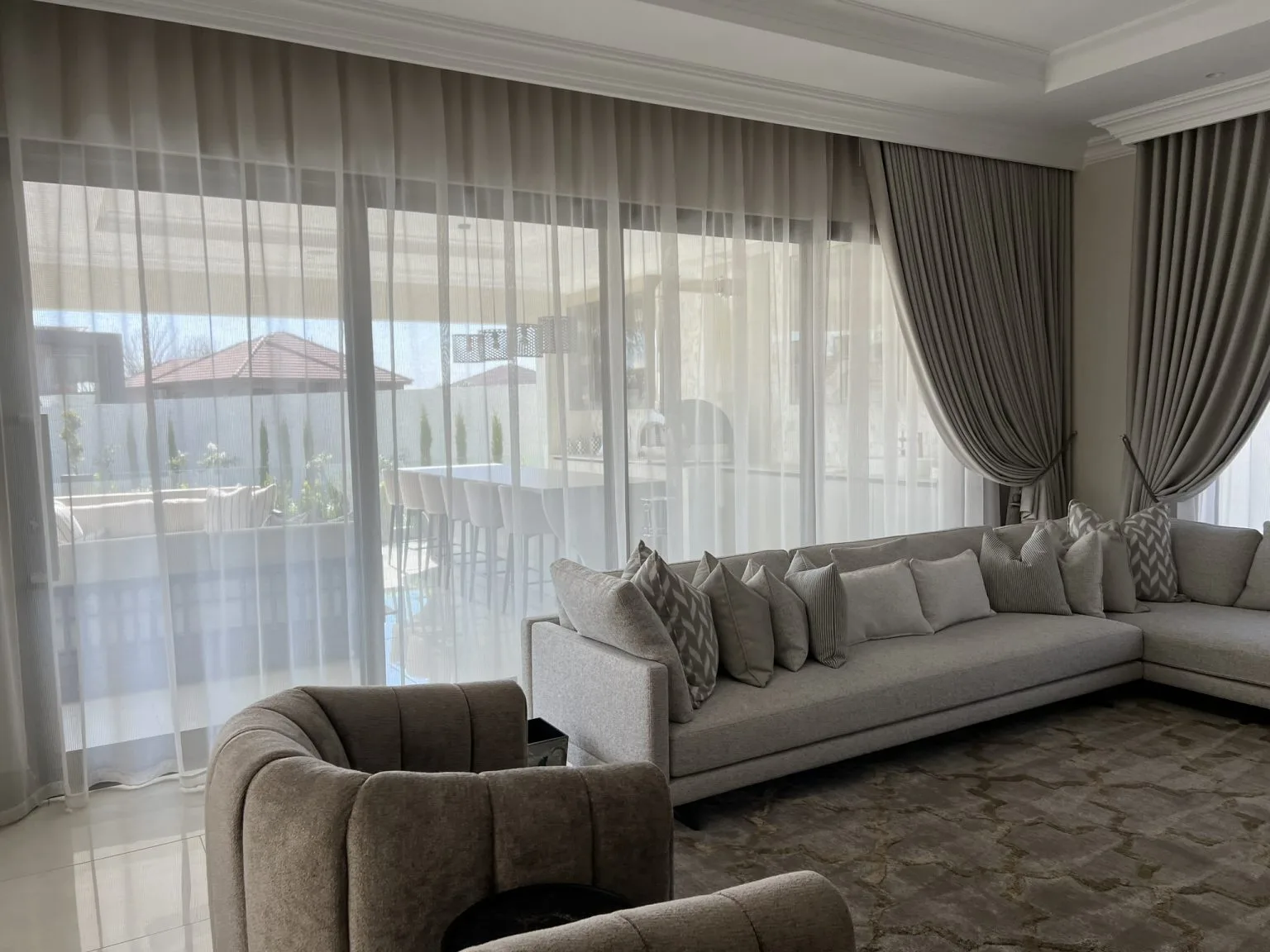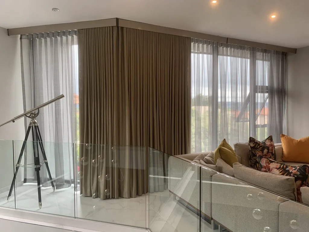Motorized curtains offer a practical solution for effortless light and privacy management. Benefit from convenient control.